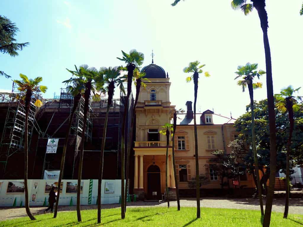 After finishing the house tour, you are able to go out into the gardens and see what is around outside. The garden has many stone lanterns and private shrines. It‘s interesting to see the mixing of western and japanese styled gardens. There is also a billiard room in the yard that you can peer into. There’s an explanation of what the billiard room’s purpose was and how many people stayed there at any given time.