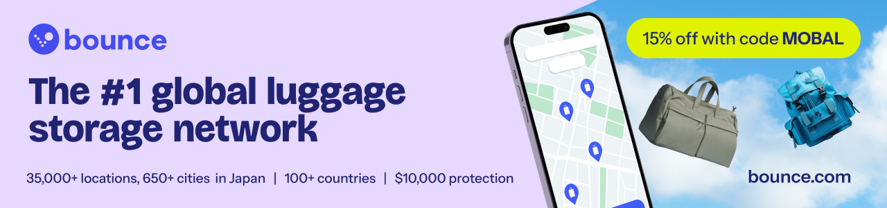 Head to Bounce.com and enter the offer code MOBAL to get 15% off lockers in Japan and around the world!