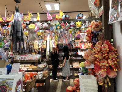 The first thing you see when you enter the store is a pile of Anpanman balloons. Anpanman is a popular Japanese cartoon superhero character that saves people by giving them a part of his own body (no I didn’t mistype anything). Anpan is a Japanese bread dessert filled with red bean paste, which is what his head is made of.